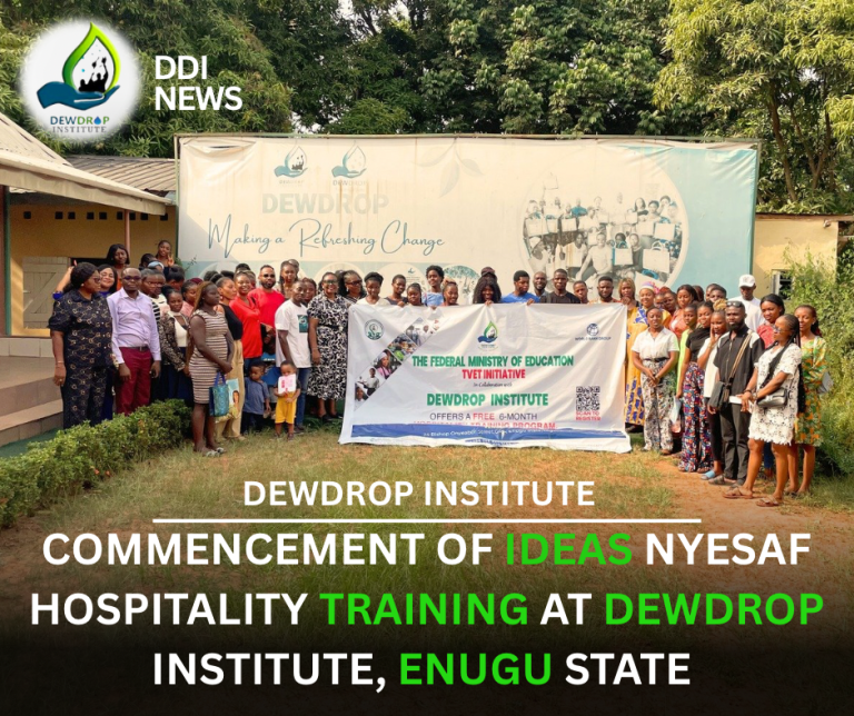 “Welcome to our website. Dewdrop Institute is a pioneering social enterprise in Nigeria dedicated to building human capital for the care economy and hospitality industry through certified top-quality vocational skills education/training (TVET).